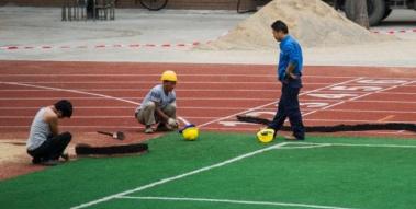 其次,操场地面划线规范还应考虑运动员的安全因素。具体来说,运动场地应将界线重点标注,并使用颜色鲜明、对比强烈的材料进行划线。这样不仅能给运动员提供清晰的视觉指引,还能避免因界线模糊而导致的碰撞和摔倒等意外事故。同时,为了确保运动员的安全,操场地面上的线条应平整、没有高低起伏或损坏的情况。